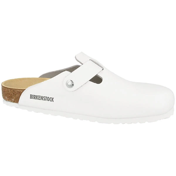 Der Clog Boston von der Traditionsmarke Birkenstock ist mit Glattleder als Obermaterial ausgestattet. Es verfügt über eine feinnarbige und gleichmäßige glatte Oberfläche. Die Laufsohle aus EVA-Material verspricht eine angenehme Schrittdämpfung und ist resistent gegen beständige Hitze, Öle oder Lösungsmittel. Für weiteren Tragekomfort sorgt das Birkenstock Fußbett aus Kork. Die Sandalen sind beliebt für Beruf und Freizeit.