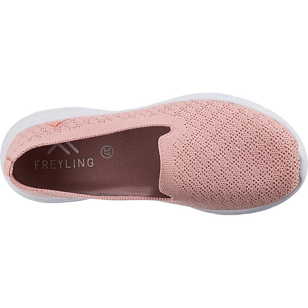 Für ein angenehmes Laufgefühl: Die Slipper der Marke Freyling. Das Design dieses Schuhpaares wird durch das textile Obermaterial unterstützt. Das Modell kommt ohne jeglichen Verschluss aus, sodass schnell und einfach hineingeschlüpft werden kann. Ein Vorteil ist außerdem das anschmiegsame Polyester-Futter.
