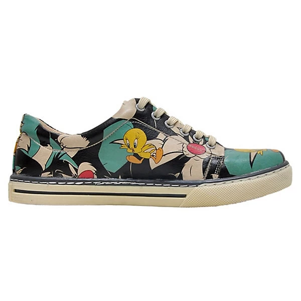 Dieser zauberhafte Lace-up Schnürer besticht durch raffinierten Look, sorgt für glänzende Auftritte und stellt eine Symbiose aus Komfort und modernem Chic dar. Die Sneaker von DOGO zeichnen sich durch einen sportiven Schnitt, sorgfältige Verarbeitung und ein außergewöhnliches Handwerksgeschick aus. Lassen Sie sich von diesen legeren Sneakern überzeugen, mit denen Sie garantiert unzählige Blicke auf sich ziehen werden. Der tolle Look wird durch auffällige Prints komplettiert. Unterstreichen Sie Ihren modebewussten und individuellen Stil mit dem zeitlosen Design der DOGO Sneakers. Diese Schuhe sind aus hochwertigem Kunstleder und mit weichen Materialien angefertigt. Mit der 6-Loch-Schnürung ist ein fester Halt garantiert und die profilierte, genähte Gummisohle sorft für einen sicheren Auftritt. Die mit Baumwollfutter gepolsterte Decksohle sichert Ihnen einen sehr angenehmen Tragekomfort und die schmale Laufsohle gibt ein gelungenes Finish.