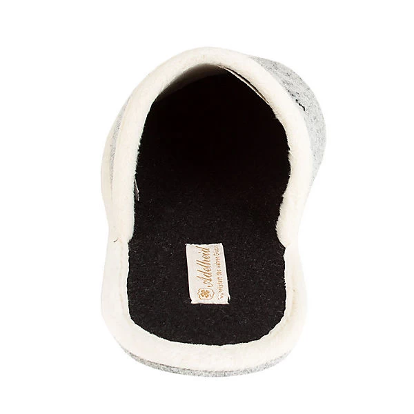 Das Original! Der echte Adelheid Filzpantoffel mit aufwendiger Stickerei und rutschhemmendem Kleeblattdruck auf der weichen Sohle. Wunderbar bequem und ausgesprochen leicht zu tragen, eben ein unentbehrlicher Begleiter das ganze Jahr hindurch. Handgefertigt wird dieser Schuh aus hochwertigem italienischem Wollfilz in unserer Pantoffelwerkstatt in Portugal.