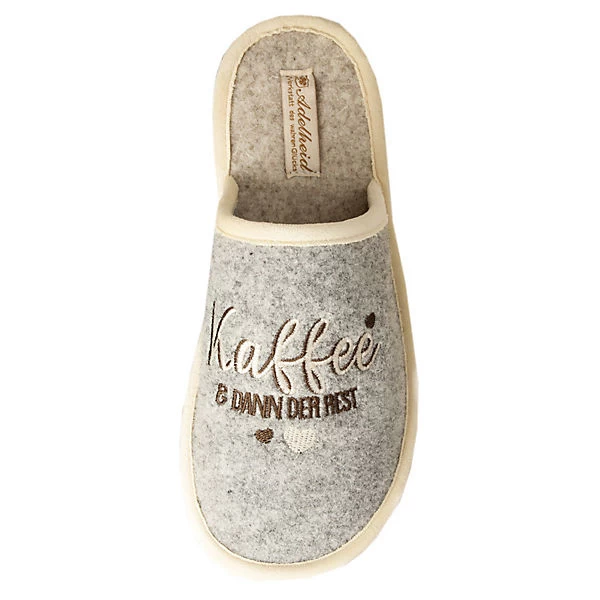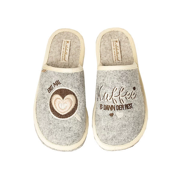 Das Original! Der echte Adelheid Filzpantoffel mit aufwendiger Stickerei und rutschhemmendem Kleeblattdruck auf der weichen Filzsohle. Wunderbar bequem und ausgesprochen leicht zu tragen, eben ein unentbehrlicher Begleiter das ganze Jahr hindurch. Handgefertigt wird dieser Schuh aus hochwertigem italienischem Wollfilz in unserer Pantoffelwerkstatt in Portugal.