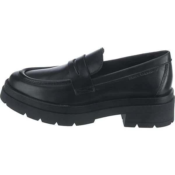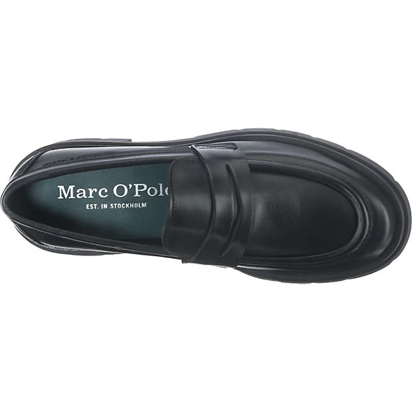 Unterstreichen unterschiedlichste Looks: Die stilvoll gestalteten Loafers von Marc O’Polo. Der Blockabsatz kombiniert einen modischen Auftritt mit hohem Tragekomfort. In die Schuhe kann schnell hineingeschlüpft werden. Für ein angenehmes Tragegefühl besteht die Decksohle aus Echtleder. Das Obermaterial zeichnet sich durch das hochwertige, echte Nappaleder aus.