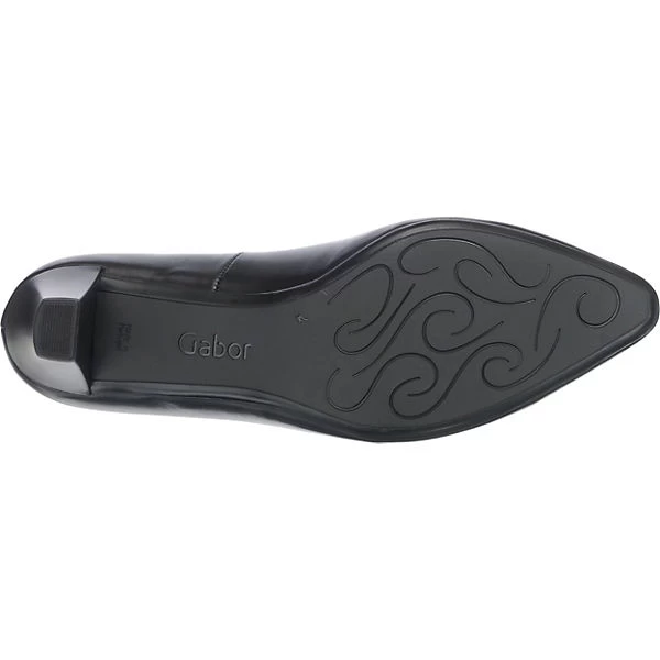 Diese Gabor Pumps zeigen sich elegant mit einem Obermaterial aus echtem Leder. Die markant geformten Zehenspitzen und die applizierte Schleife sorgen für einen hübschen Blickfang.