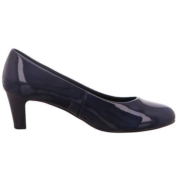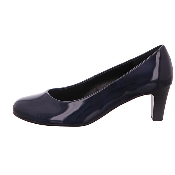 Flotter Pumps von Gabor aus einem hochwertigem Lackleder. Innen ist der Schuh mit einem cromfrei gegerbtem Leder ausgestattet. Der Schuh hat eine normale Weite. Der Trichterabsatz hat eine Höhe von cirka 5 cm. Die Laufsohle ist aus Gummi. Die Schuhgröße fällt regulär aus.