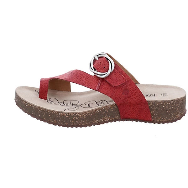 Eine Damen-Sandale in jungem Design von JOSEF SEIBEL. Die Riemen sind aus hochwertigem Leder gearbeitet und geben ein bequemes Tragegefühl. Die Zehenschlaufe und der verstellbare Schnallenverschluss geben sicheren Halt. Optisches Highlight ist die hübsche silberne Schnalle.