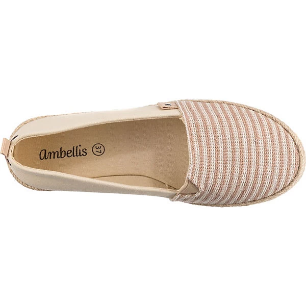 Die Espadrilles von ambellis sorgen stets für einen trendigen Style. Dieses Modell kommt ohne jeglichen Verschluss aus, sodass ganz einfach hineingeschlüpft werden kann. Das textile Obermaterial ist anpassungsfähig und überzeugt durch ein geringes Gewicht. Ein Vorteil ist außerdem das anschmiegsame Canvas-Futter.